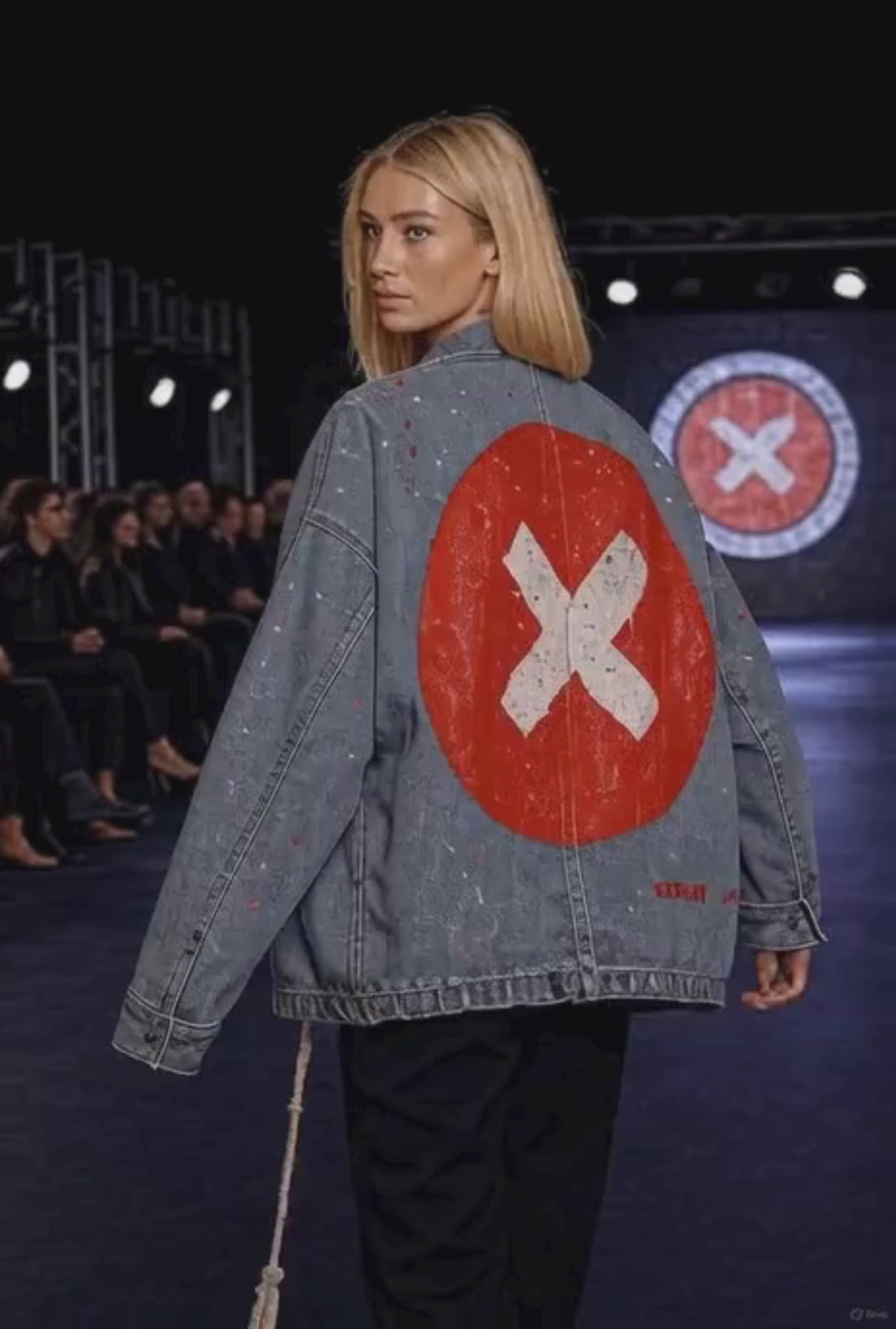 Hand-Painted Denim Jacket-Evil eye (Dark blue)